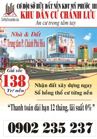 Bán đất khu dân cư Chánh Lưu, giá chỉ 233 triệu/ nền